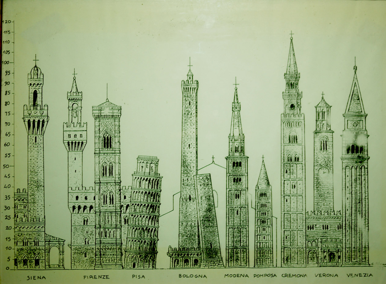 한눈에 딱 보이는 이탈리아의 유명한 탑들. 친절하게도 기울기까지 완벽하게 보여주고 있다. 피사의 탑이 제일 예뻐서 훨씬 더 유명해진걸로 추정해버렸다.