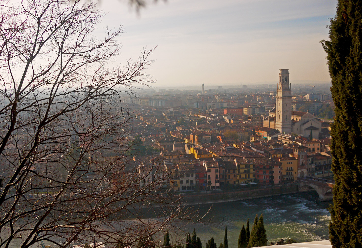 스칼리제로 다리를 지나 올라와보면 San Pietro 언덕을 오를 수 있다. 한 15분정도 걸리는데 날씨가 좋지 않으면 안개 낀 런던 느낌이 나고 화창하면 제대로된 이탈리아 붉은 지붕의 도시를 만끽할 수 있다. 바로 아래에는 1세기에 지어졌다는 로마시대의 원형극장이, 그 옆에는 안타깝게도 공사중이었던 고고학 박물관. 확실히 중세, 연인들의 로맨틱함이 물씬 풍기는 도시.
